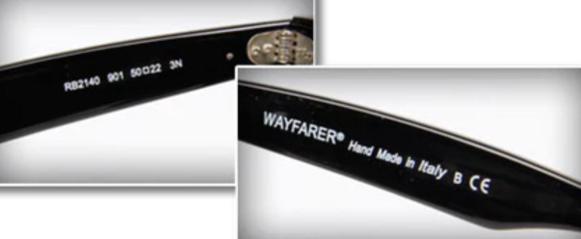 Todos los Ray Ban originales tienen las letras ¨ RB¨ grabadas con láser en relieve en el lente y tienen escrito en blanco en la esquina superior del lente del vidrio ¨Ray Ban¨.