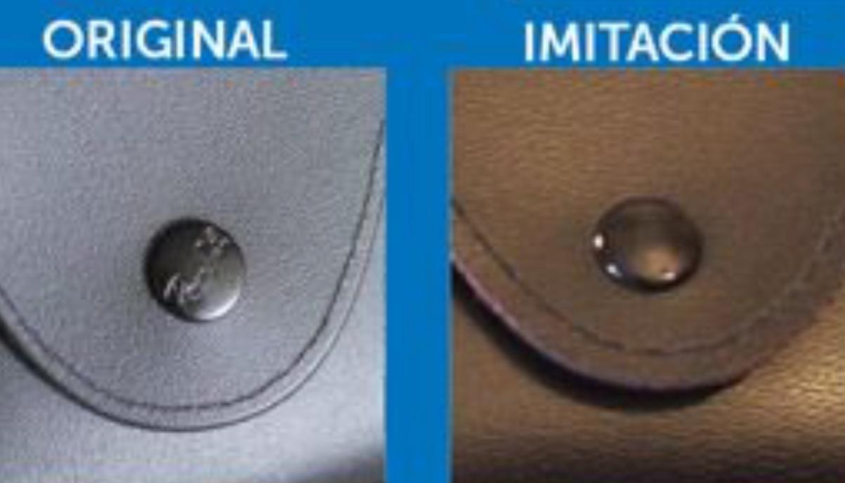 El estuche debe ser de alta calidad. La mayoría están hechos de cuero marrón o negro y debe tener el logo de Ray Ban en el botón.